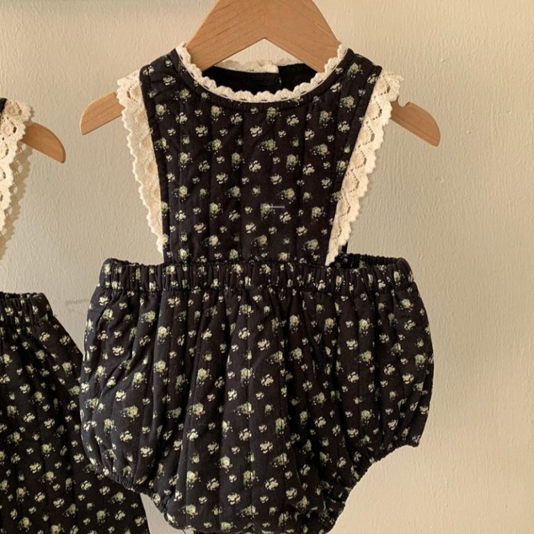 [66-130cm] 韓国風 小花柄 中綿 ロンパース ワンピース