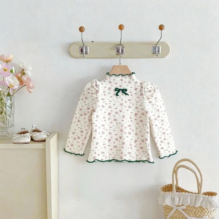 [73-120cm]Tシャツ 韓国風 小花柄 リボン 可愛い トップス