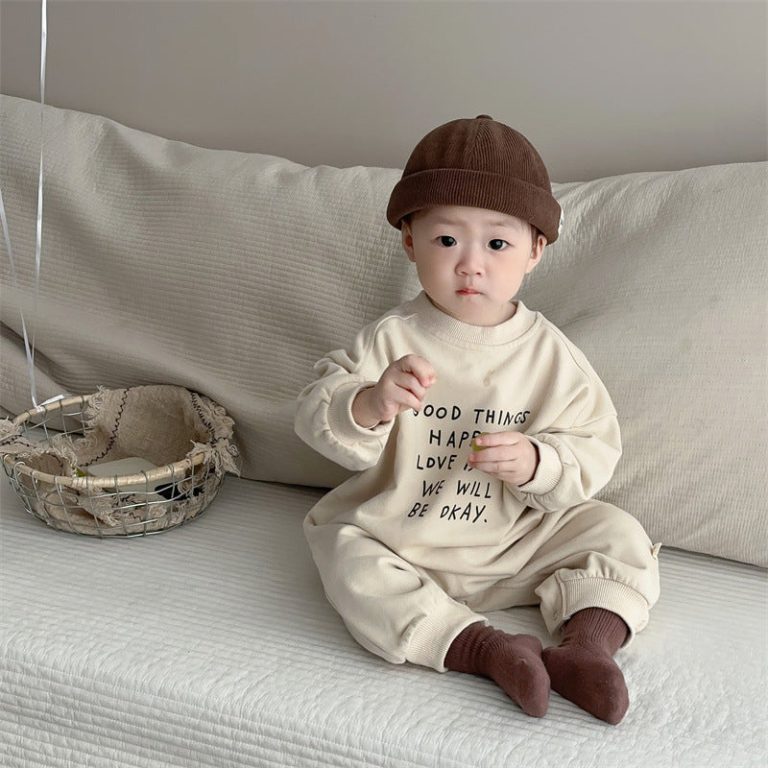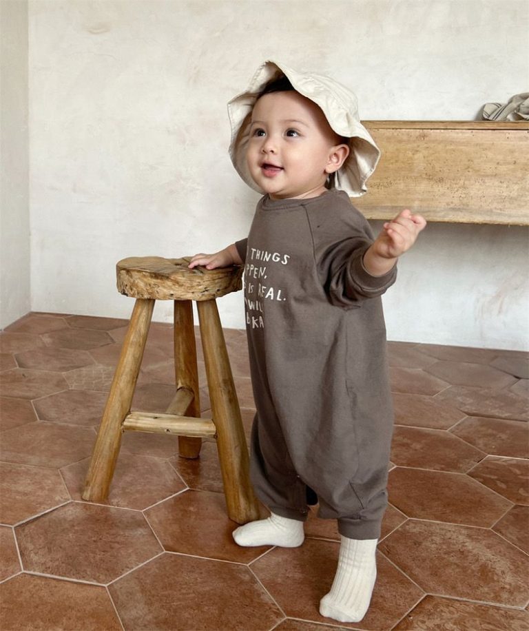 [66-90cm]英字入り 長袖 オールインワン