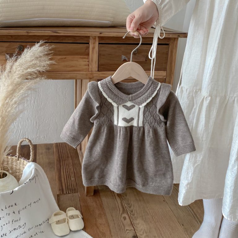 [66-100cm]ハート柄 ニット ワンピース