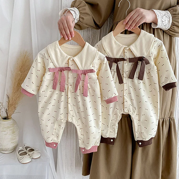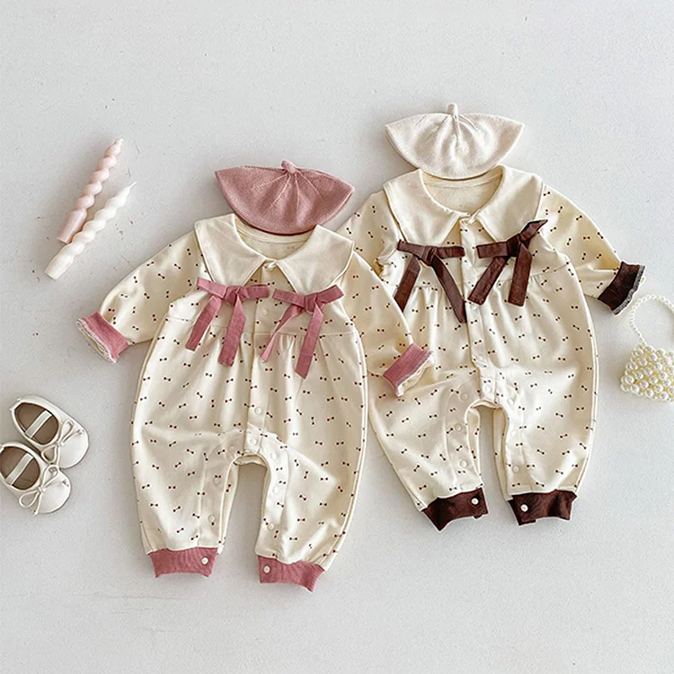 [66-100cm] 丸襟 小花柄 トップス & サロペット ロンパース