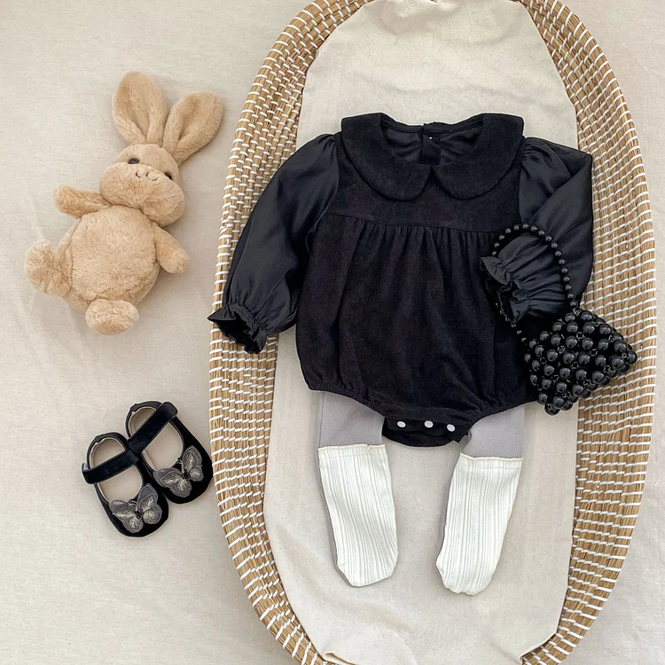 [66-90cm] ノーカラーコーデュロイ ロンパース