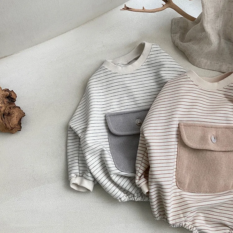 [66-90cm] 韓国風 ボンボン付き ボーダー オールインワン
