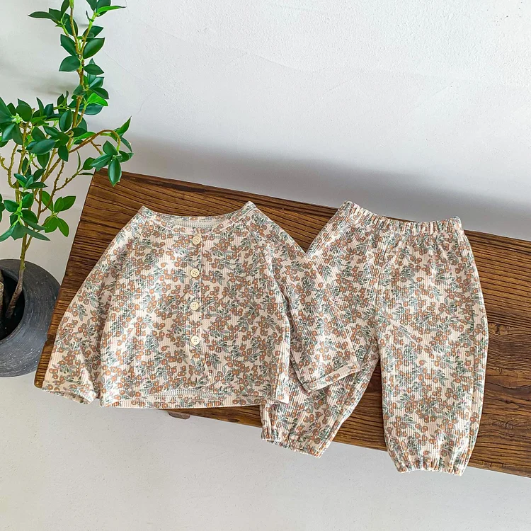 [73-120cm]ナチュラル トップス+パンツ セット ルームウェア