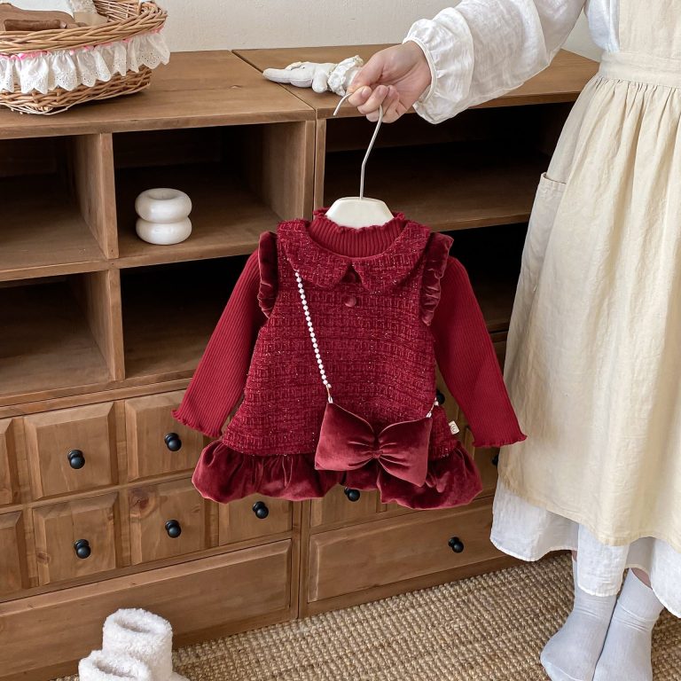 [73-120cm] ツイード風 お姫様 ワンピース&リボンアクセ