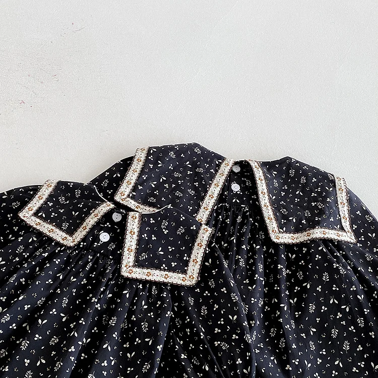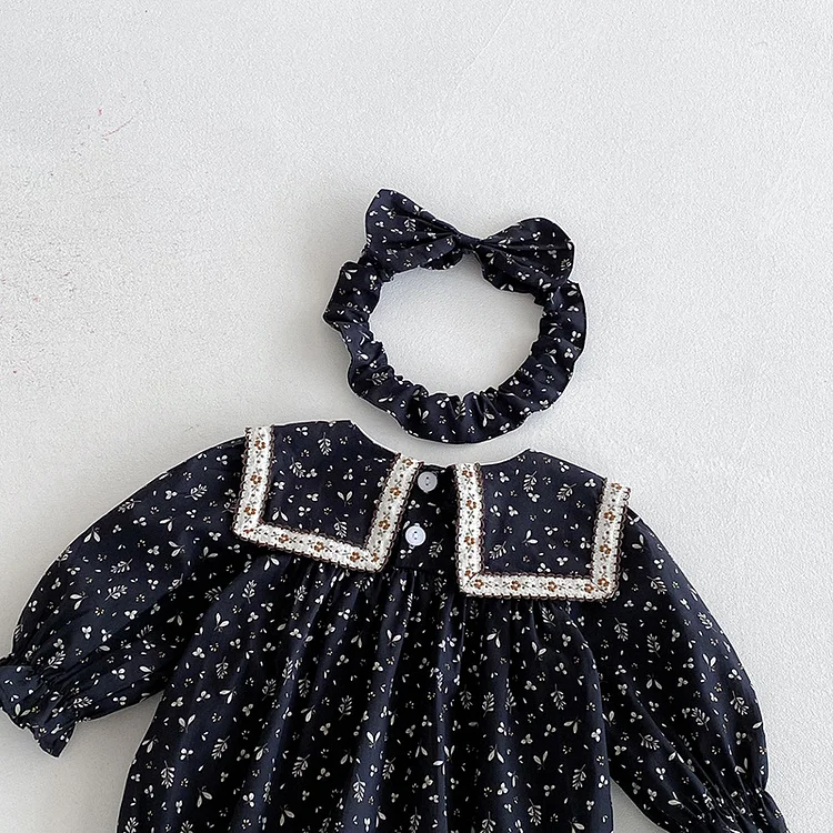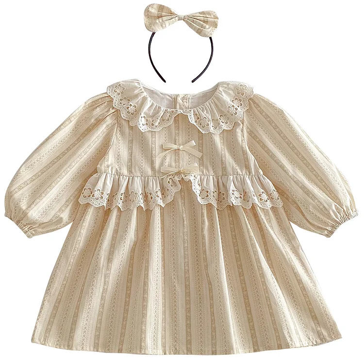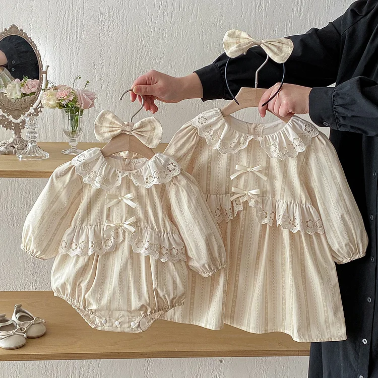 [66-140cm]ワンピース OR ロンパースレース襟リボン柄 可愛い