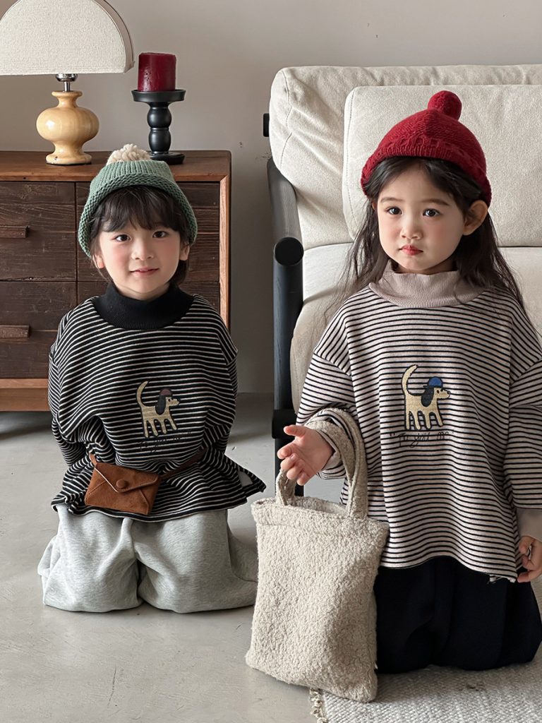[80-140cm] カジュアル ボーダー柄 トレーナー