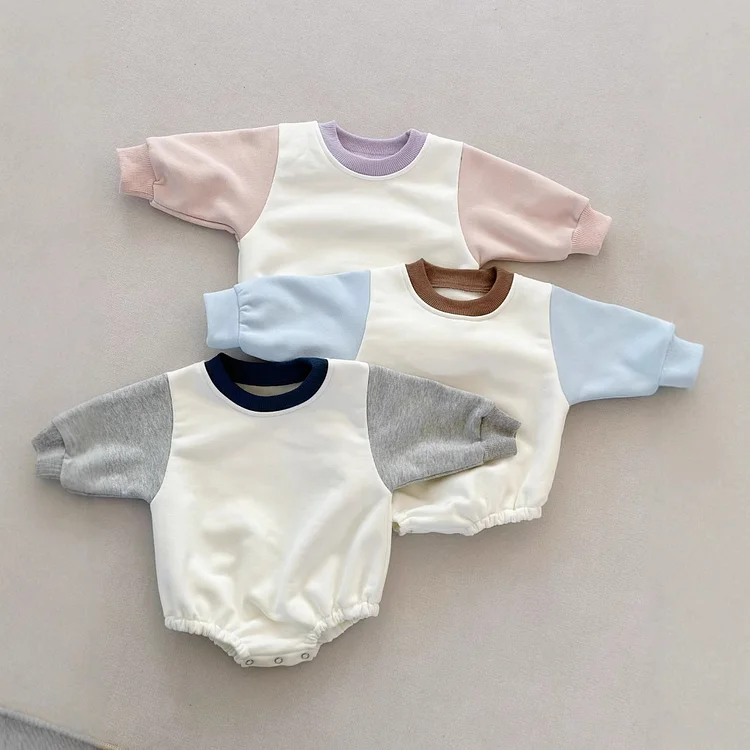 [59-100cm]ロンパース カラー 切り替え シンプル 着心地良い ベビー服