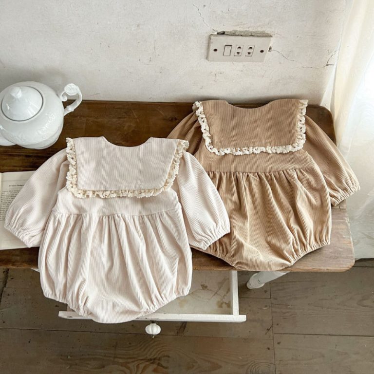 [66-100cm]フリル襟 コーデュロイ ロンパース