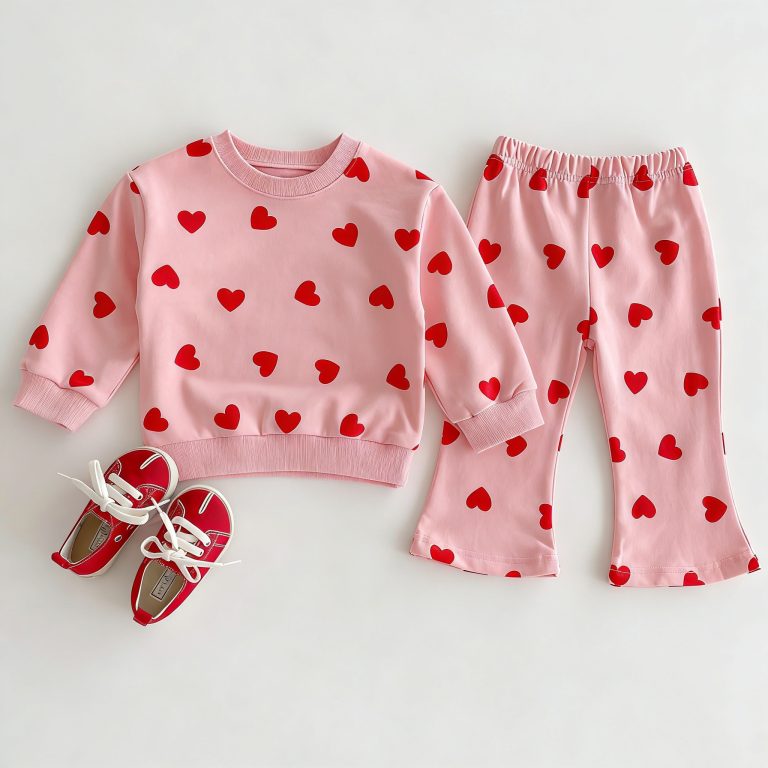 [80-130cm]セットアップ 女の子 ハート柄 トレーナー+パンツ