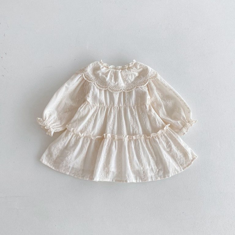 [80-130cm]長袖 ワンピース 女の子 おしゃれ レース襟