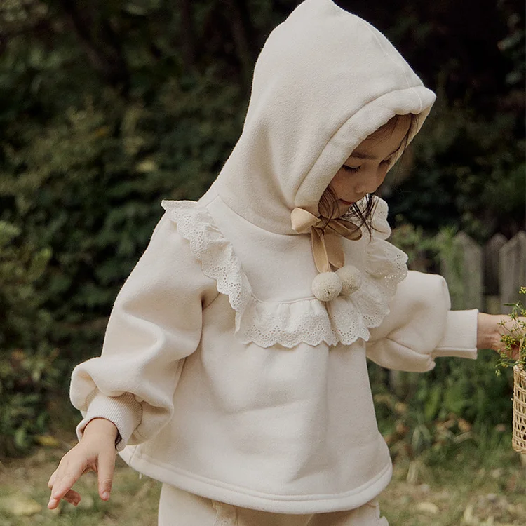 [90-150cm] フリル フード付きプル オーバー