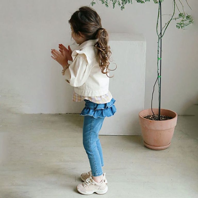 [90-150cm]ゆったり チェック柄 デニム パンツ