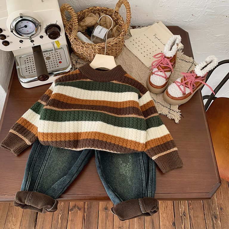 [90-150cm]ボーダー柄 ふんわり 保温性 セーター