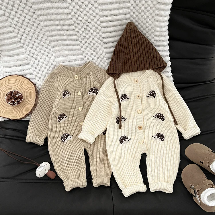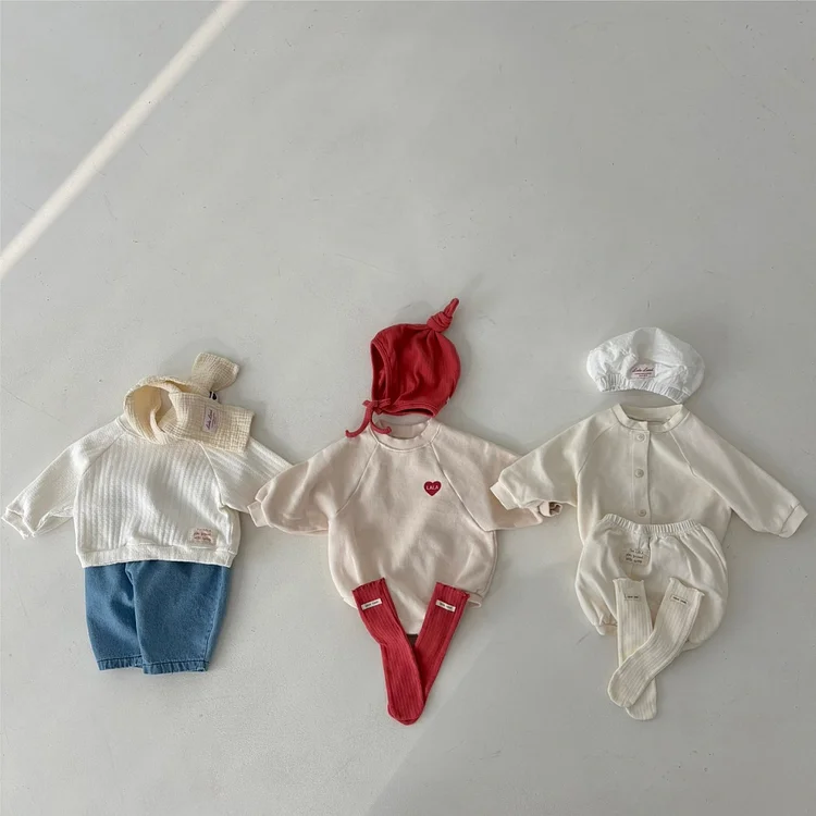 [66-90cm] ハート 刺繍 あったか ロンパース
