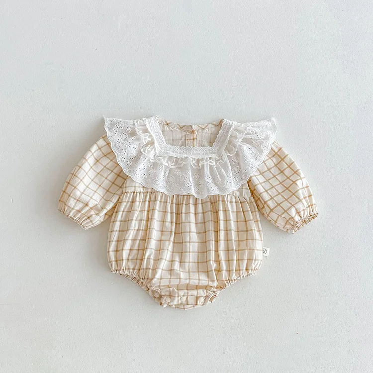 [66-90cm] フリル襟 チェックOR花柄 ロンパース