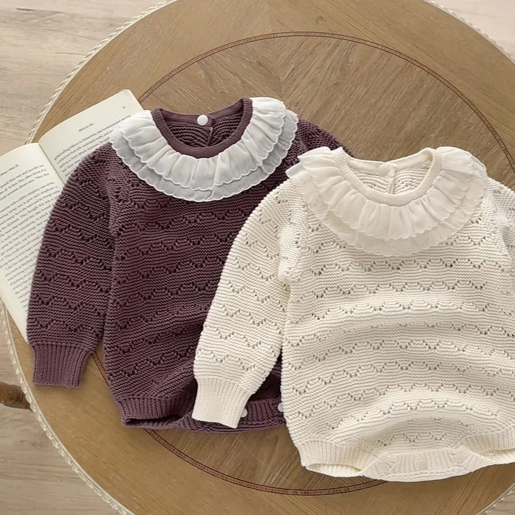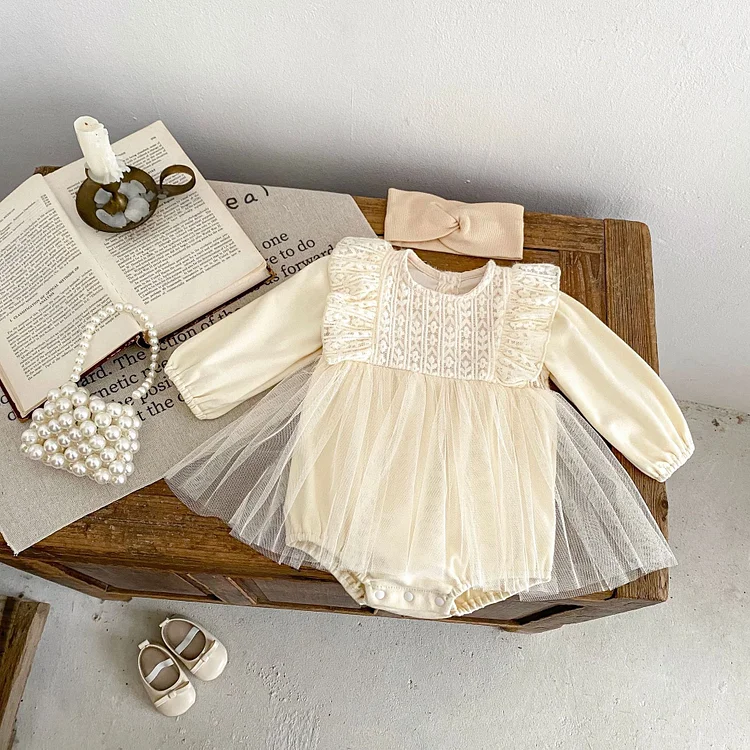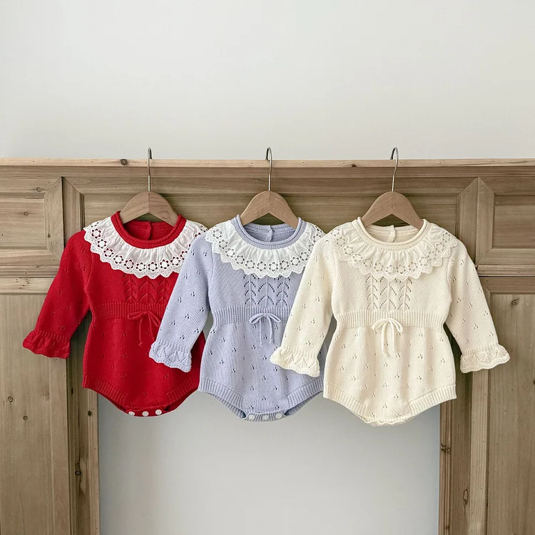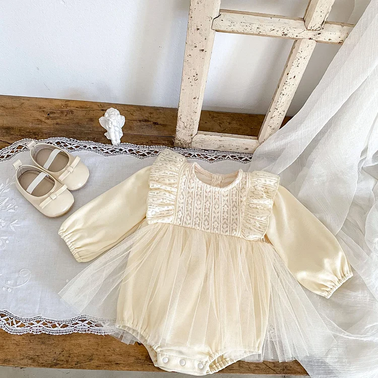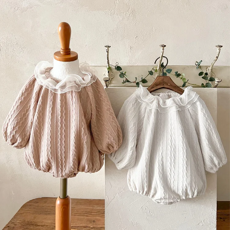 [66-90cm] レース襟 ワンピース風 ロンパース