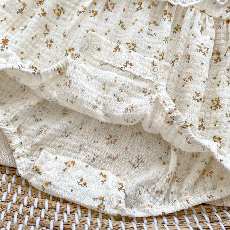 [66-90cm] ワンピース風 小花柄 ロンパース