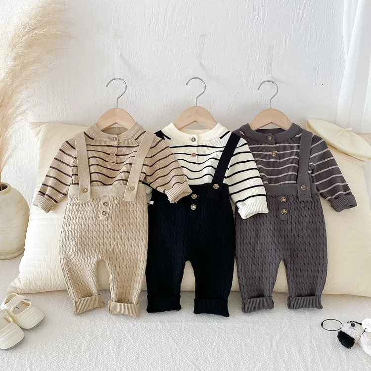 [66-90cm] ボーダー ニットトップス&サロペット 2点セット