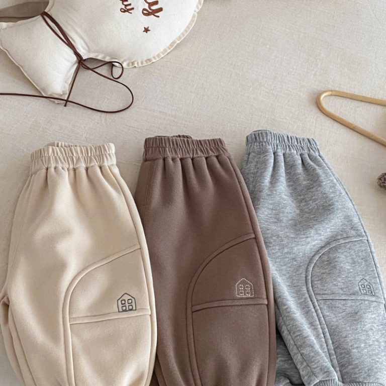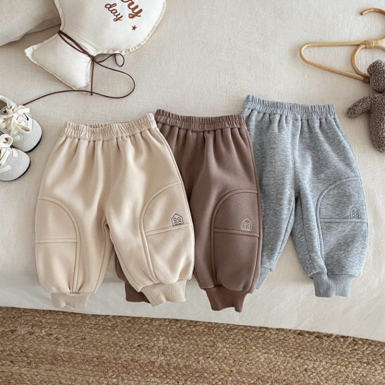 [73-120cm] おうち 刺繍 裏起毛 パンツ