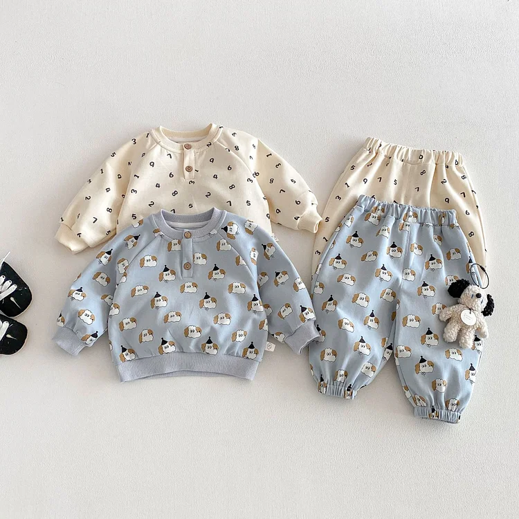 [73-110cm] 犬柄&数字柄 カジュアル 2点セット