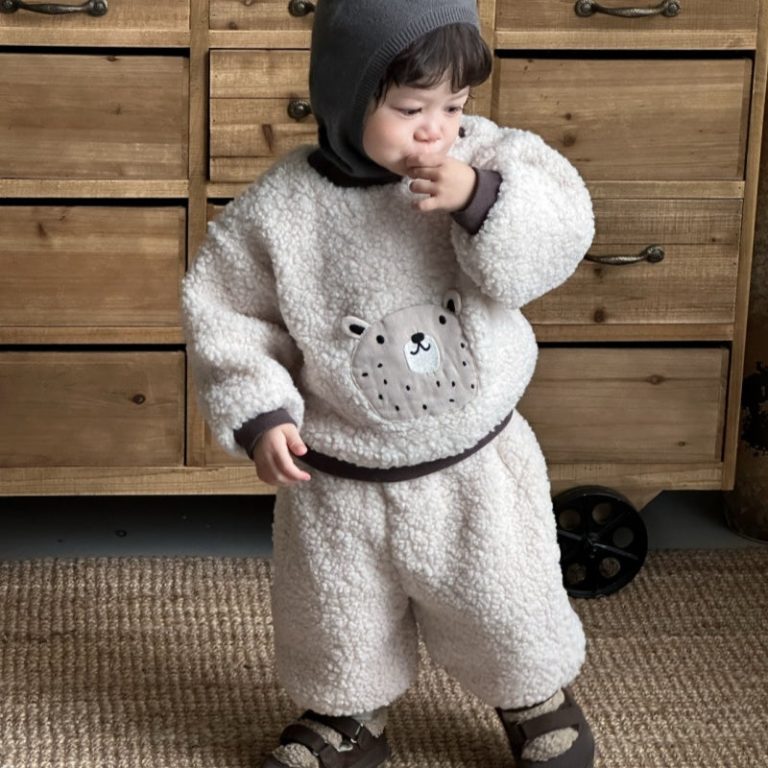 [73-110cm] 韓国風 くまさん、ライオン あったか セットアップ