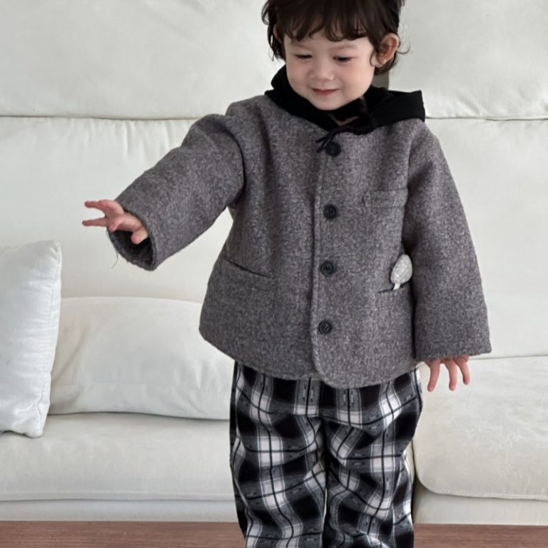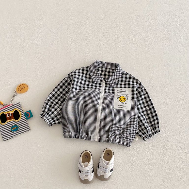 [73-110cm]カジュアル チェック柄 切り替え アウター