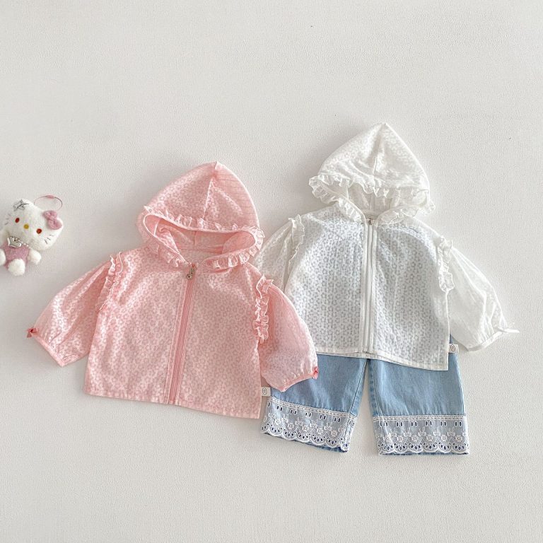 [73-120cm]フード付き アウター&パンツ 女の子 無地 通気性抜群