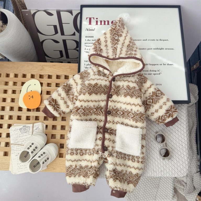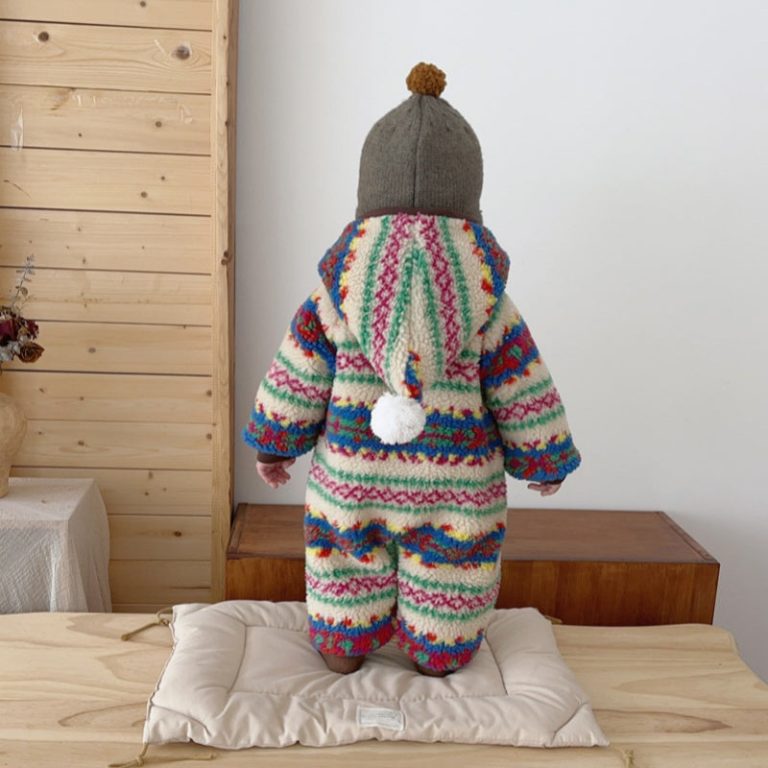 [66-100cm] レトロ フード付き あったか カバーオール