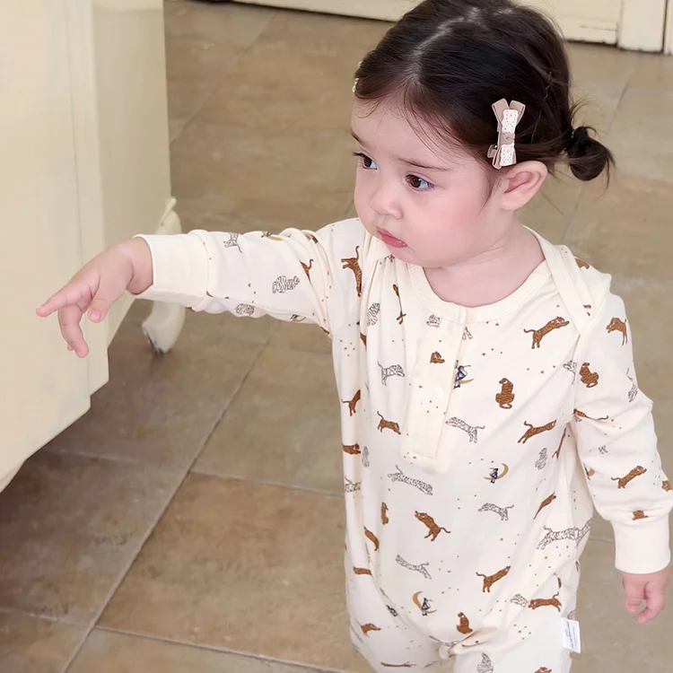 [66-100cm] ボンネット付き 熊柄 ロンパース