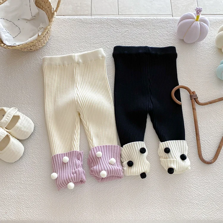 [66-100cm] ボンボン付き カラー切り替え レギンス