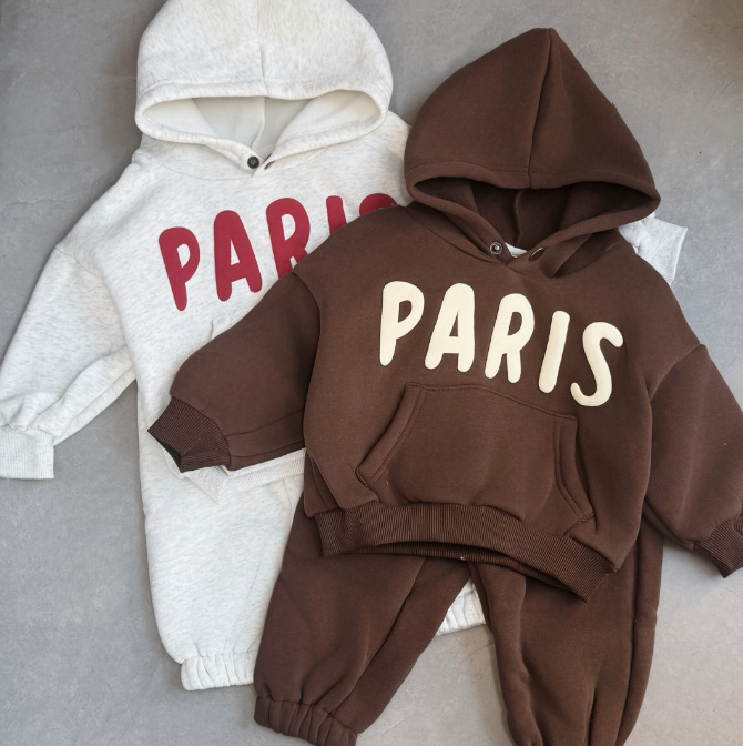 [73-120cm] 英字 パーカー&パンツ セットアップ