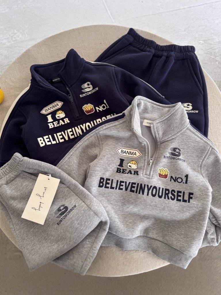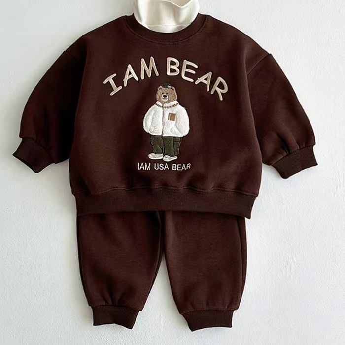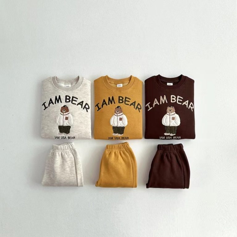[73-120cm]カジュアル クマ柄 トレーナー+パンツ セット