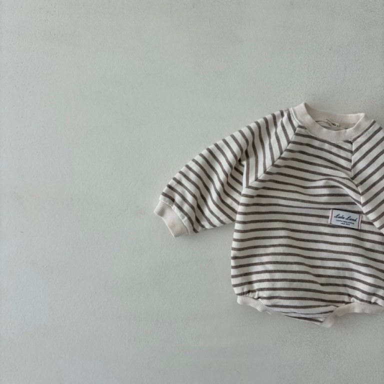 [66-90cm]ポケット付き ボーダー ロンパース