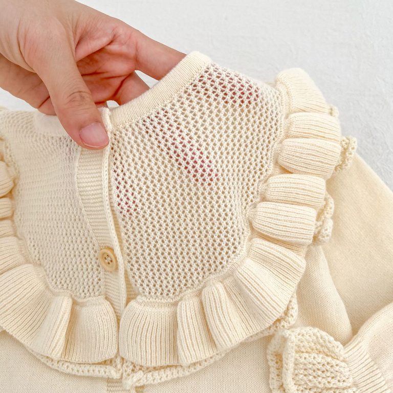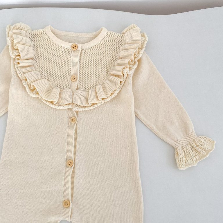 [66-90cm]ベビー ロンパース ニット 無地 フリルデザイン