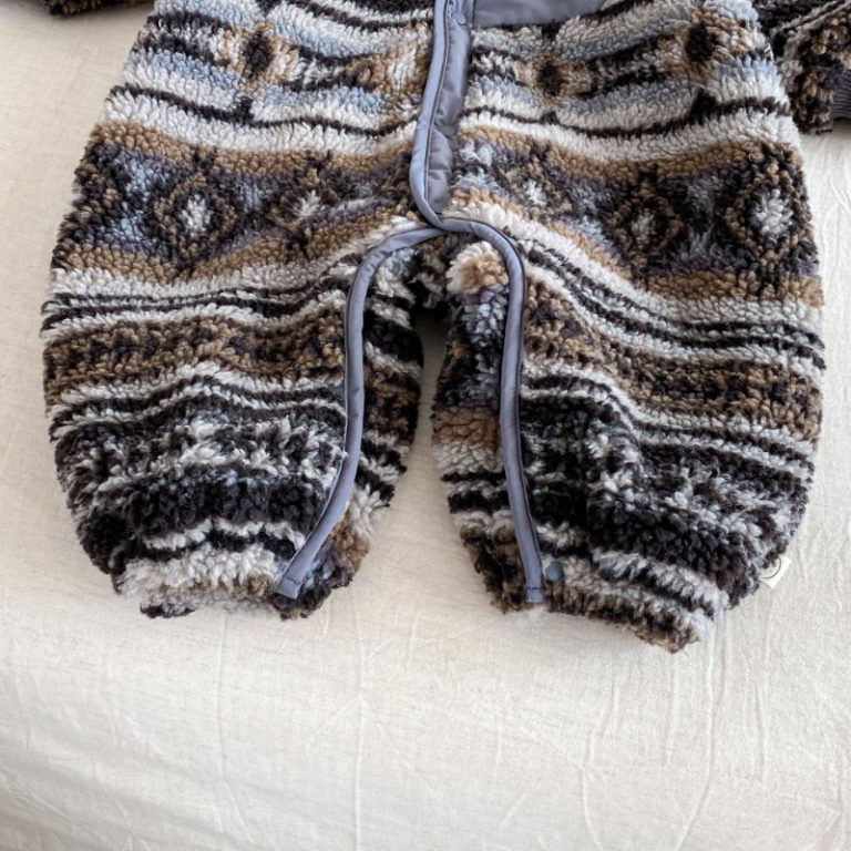 [66-90cm]レトロ フード 裏起毛 カバーオール