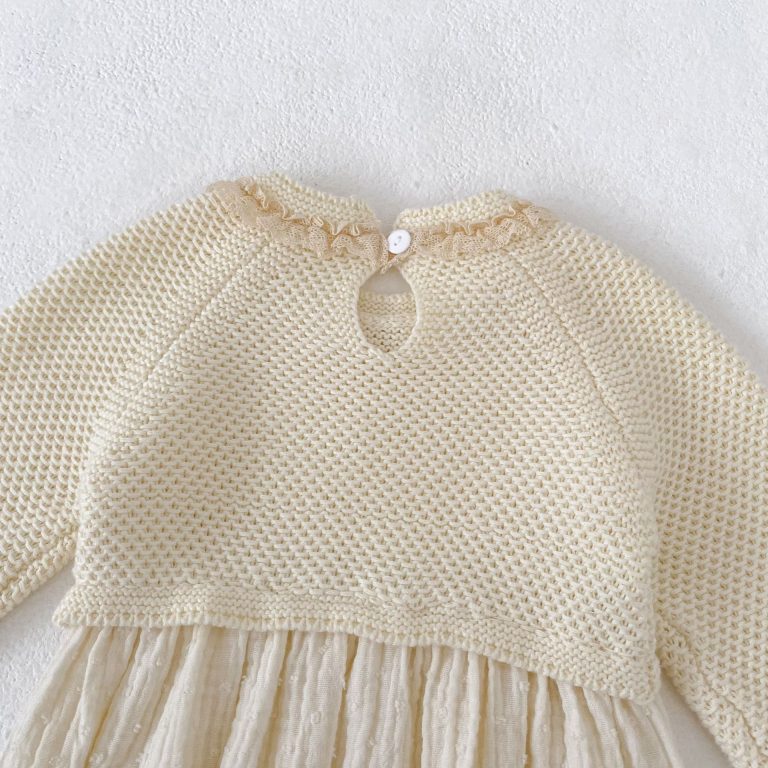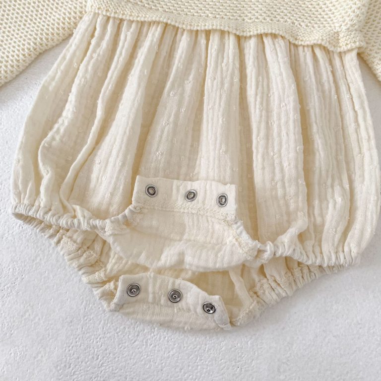 [66-90cm]ロンパース ベビー ニット 切り替え 肌にやさしい
