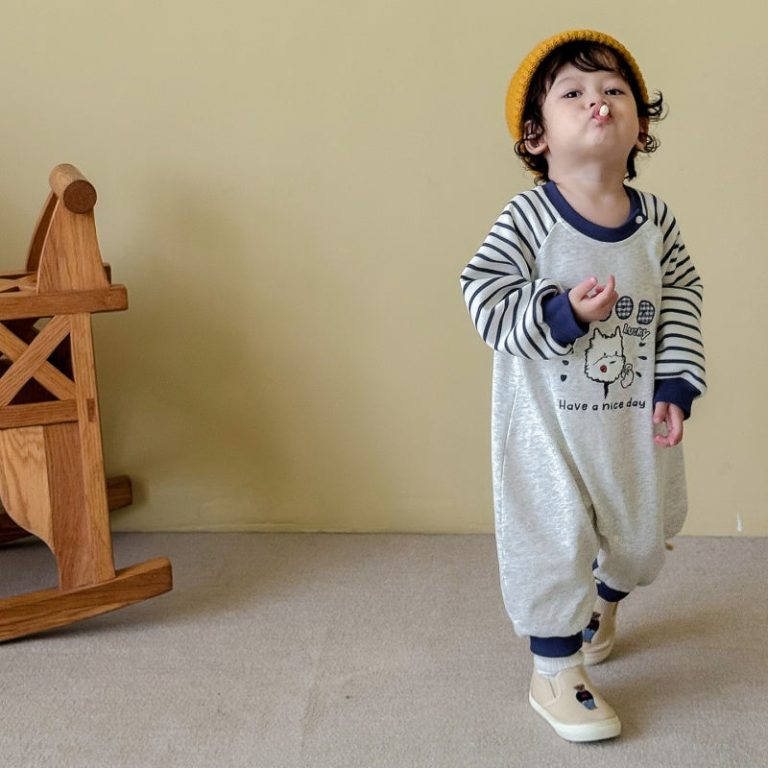 [66-90cm]刺繍 カートゥーン カバーオール