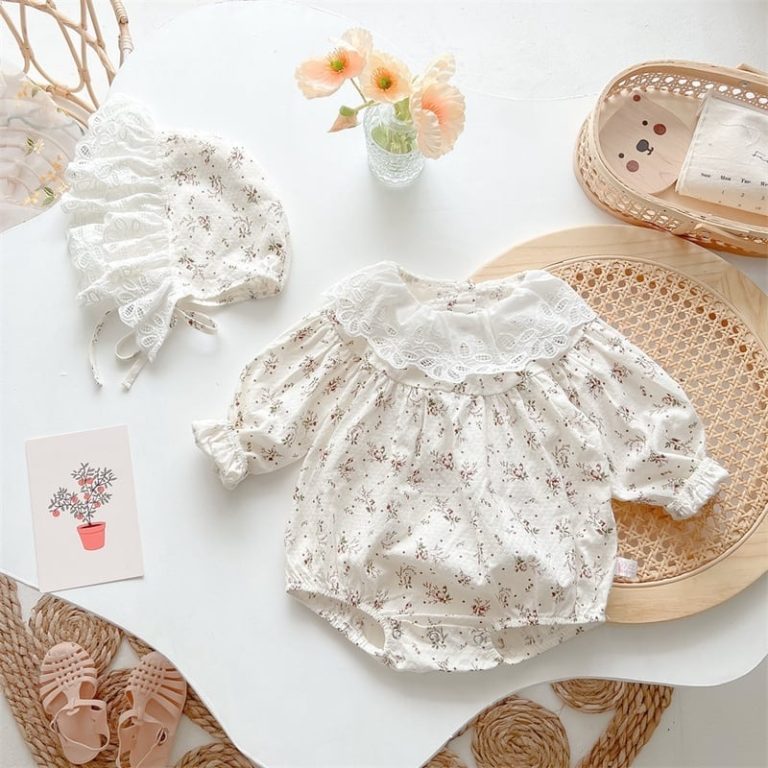 [66-90cm]ロンパース&帽子 レース おしゃれ 肌に優しい ベビー服