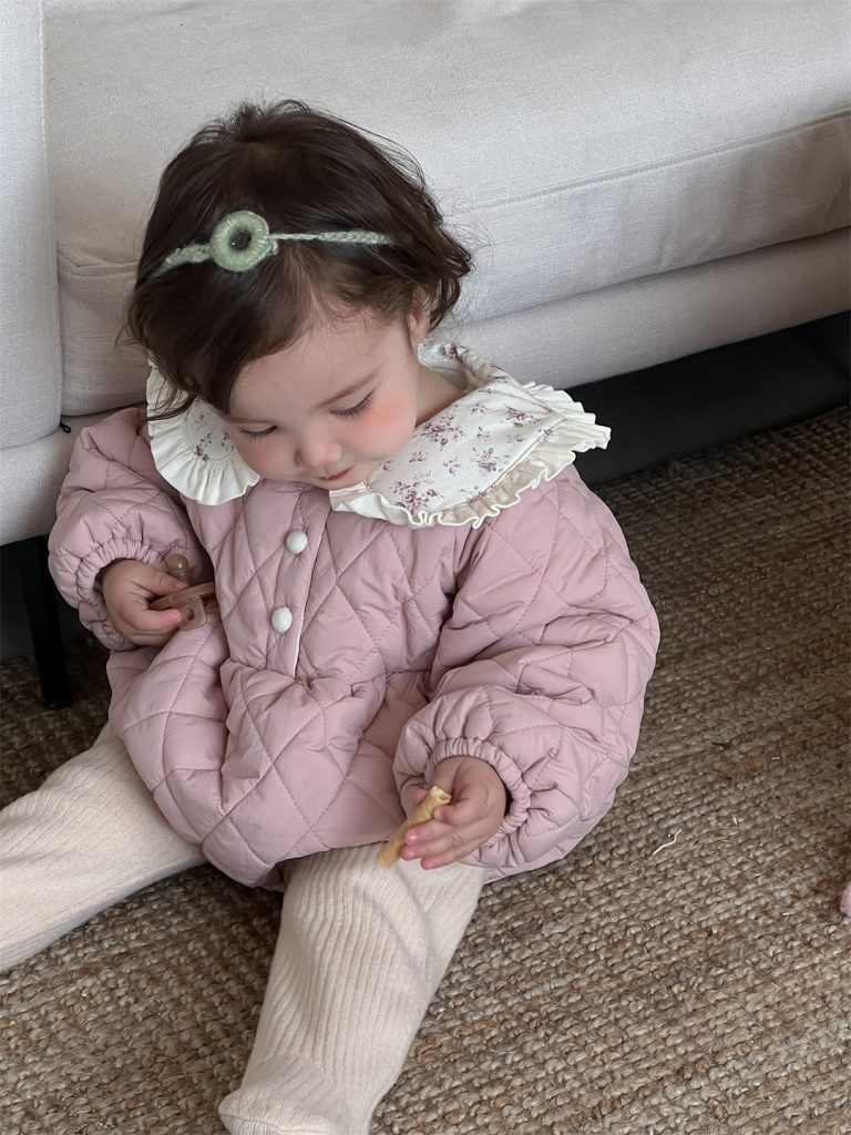 [66-90cm]韓国風 フリル花柄 ロンパース