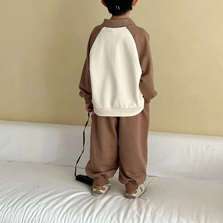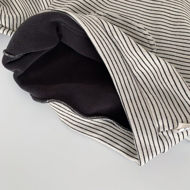 [80-140cm]ボーダー柄 フード付き 裏起毛 パーカー/パンツ
