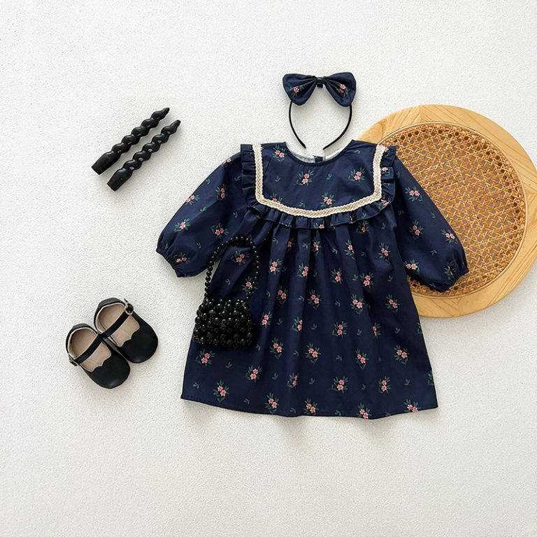 [80-140cm]ガーリー 花柄 長袖 ワンピース