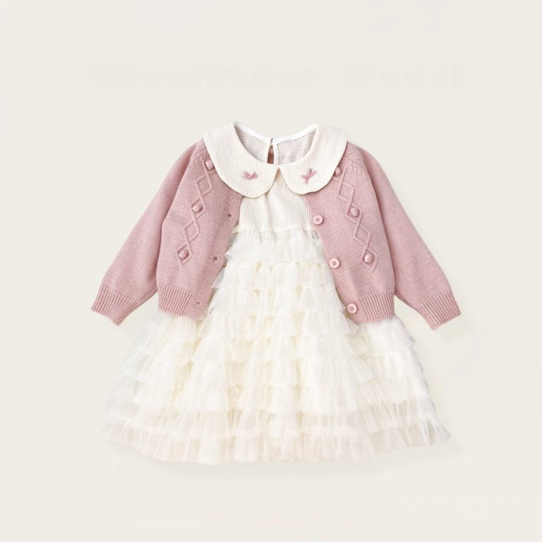 [80-140cm]ポンポンカーディガン&リボンチュールワンピース