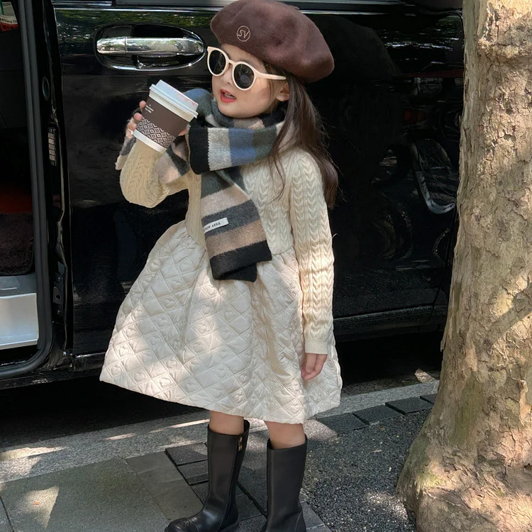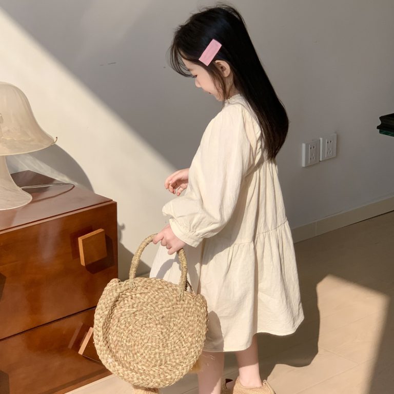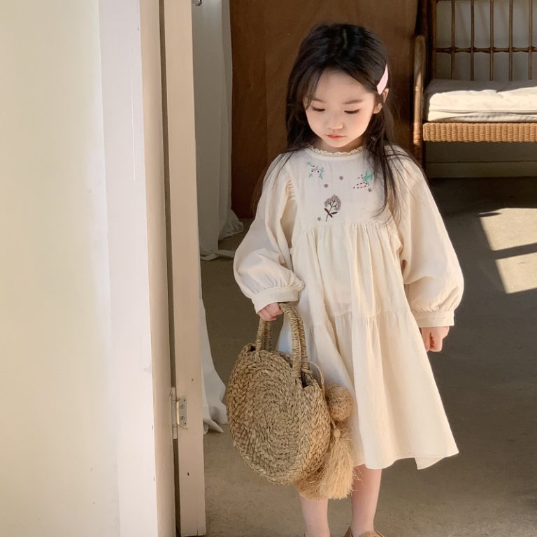 [90-130cm]刺繍 スウィート 長袖 ワンピース