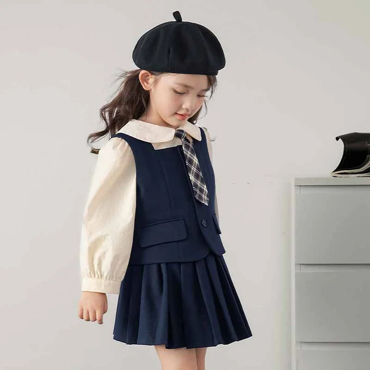 [90-140cm] フォーマル ネクタイ付き シャツ&ベスト&スカート 3点セット