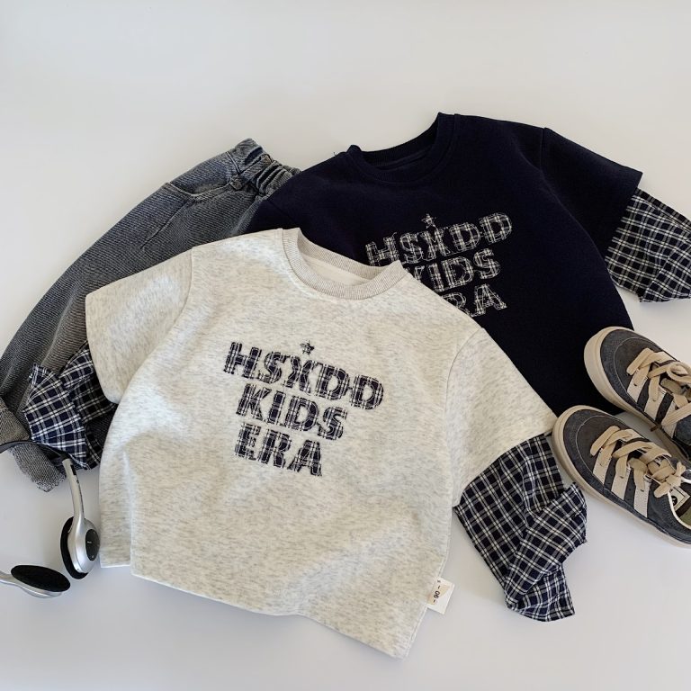 [90-140cm]デザイン満点 カジュアル 切り替え トレーナー