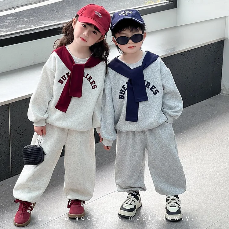 [90-140cm]プリント 裏起毛 フード付き パーカー+パンツ セットアップ