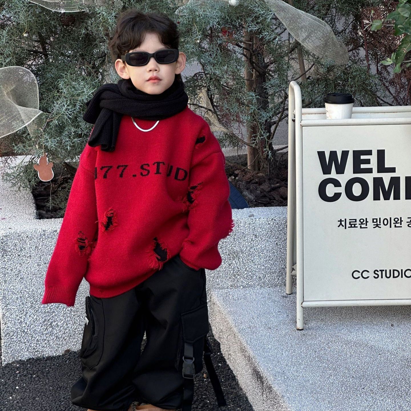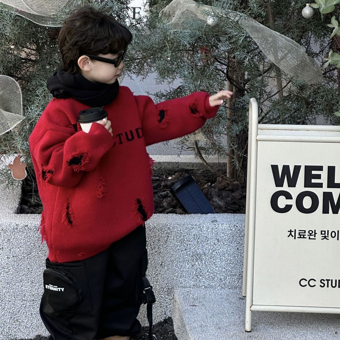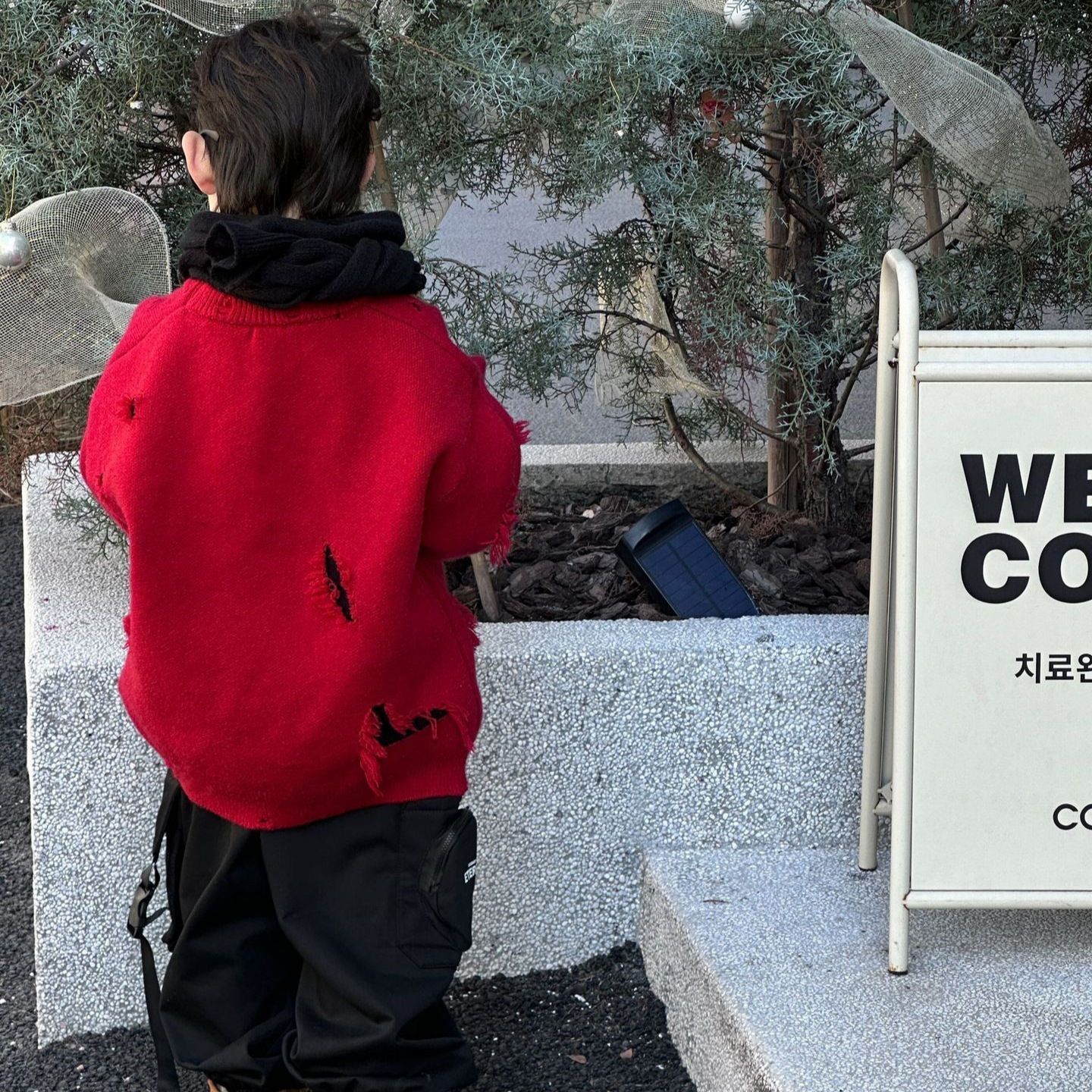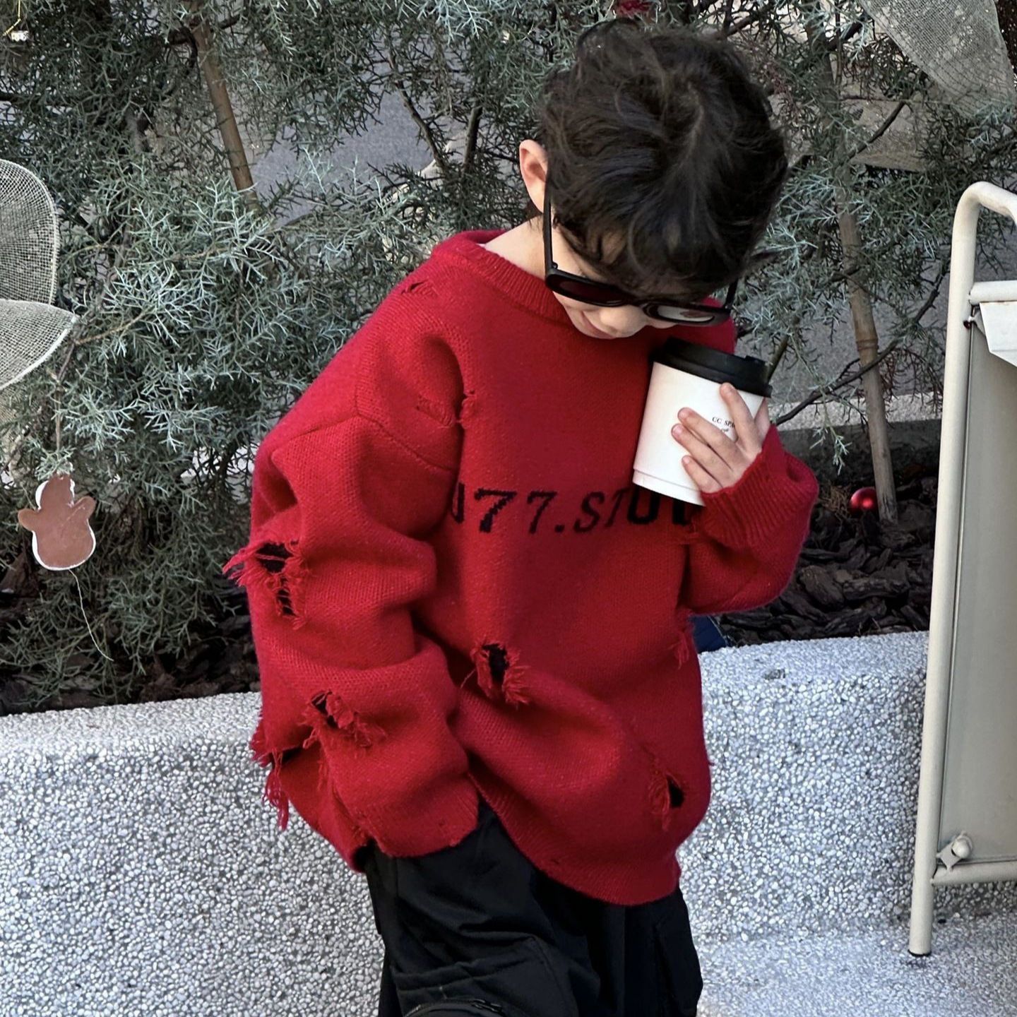 [100-150cm]カジュアル 厚手 ダメージ加工 セーター