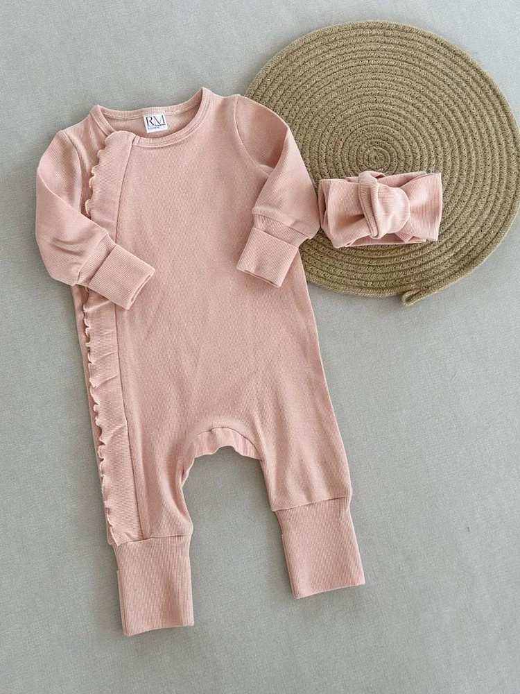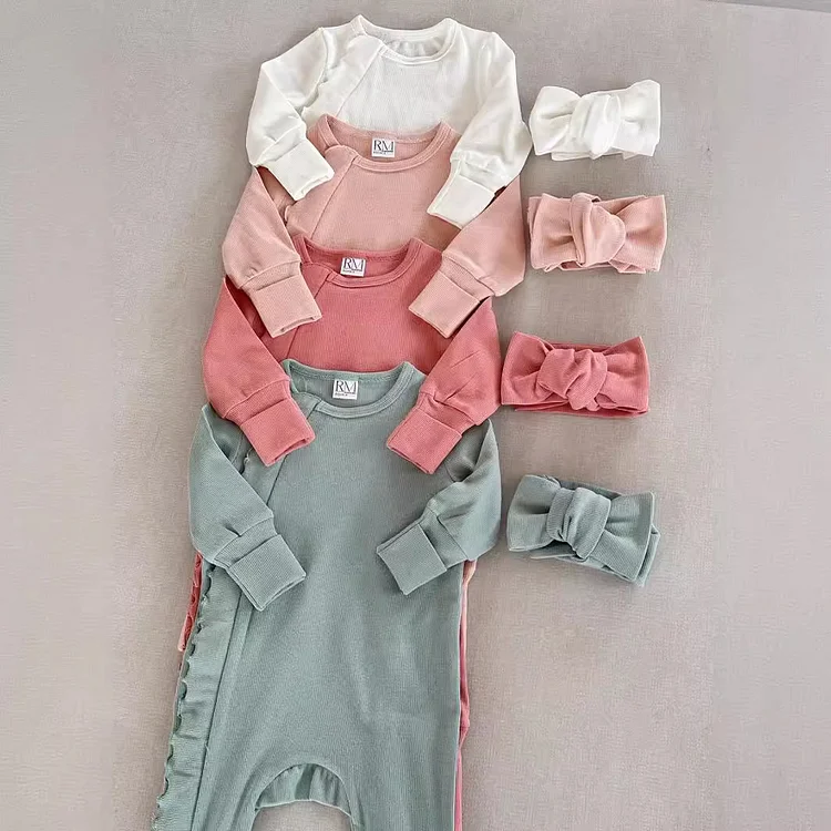[59-90cm] ヘアバンド付き 無地 ロンパース