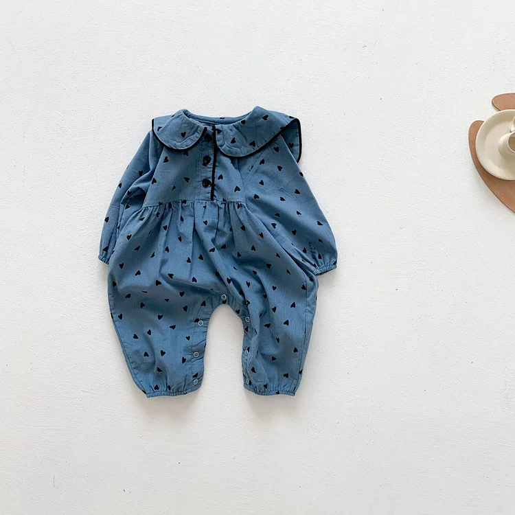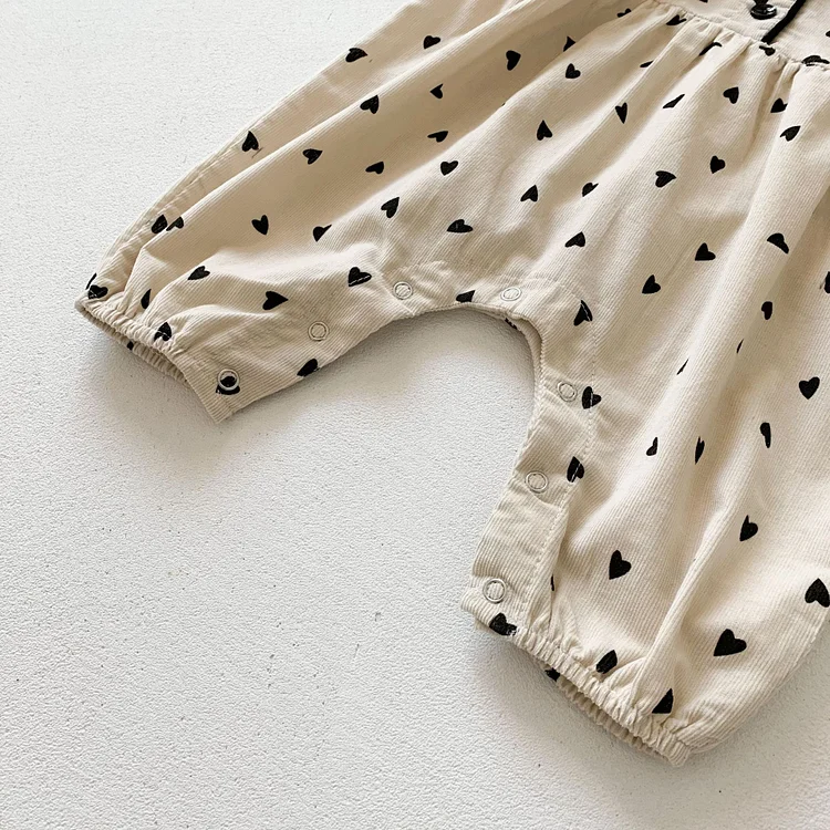 [66-100cm]オールインワン 丸襟 ハート柄 おしゃれ ロンパース